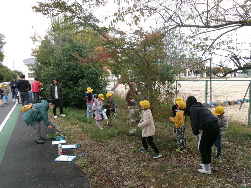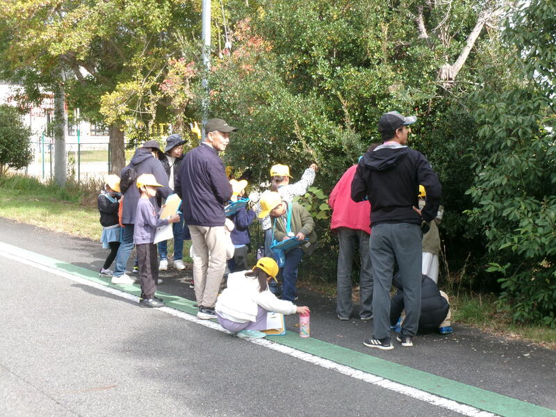 11月に入りました。今日は1年生がたくさんのボランティアの方々にお世話になり、秋みつけ・どんぐり調べをしました。校庭とどんぐり街道を班ごとに歩き、たくさんのどんぐりのなる木を見て歩き、大きさや模様の違い、葉っぱの違いなどを調べました。普段何気なく見ている物もじっくり見るとすてきな発見がたくさんありました、大満足の1年生でした。