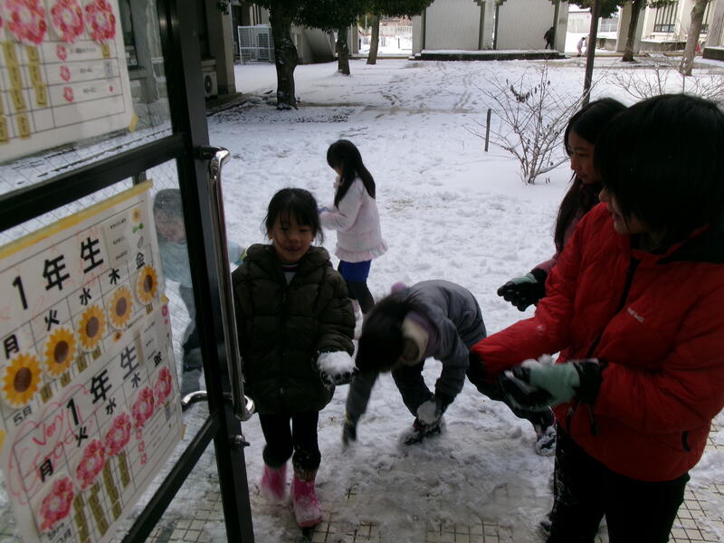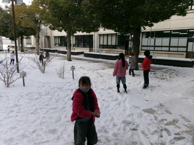 今日は朝から一面の雪景色でした。極寒の中の登校でしたが子どもたちは学校へ着くなり(着くまでにも)雪遊びに夢中です。朝からがんばって勉強して、中休みになるとたくさんの子どもたちが中庭や運動場で雪遊びにやってきました。寒くないのかと心配するのは大人だけで、子どもたちは元気いっぱい雪遊びを楽しんでいました。雪に反射して一層笑顔がキラキラしていました。