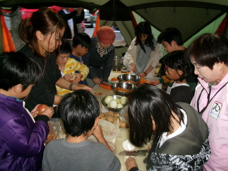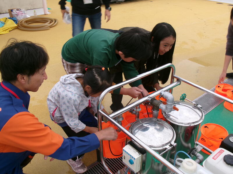 先日の25・26日にコミュニティスクールにお世話になり、防災キャンプを開催しました。昨年度も行いました防災について学習・防災テントの設営・かまどでの夕食づくりの他に、今年度はプールの水を濾過して使用する体験や、防災食を作っておられる尾西食品の所長様からの話を聞く機会を設けました。また、ダイハツからボランティアチームも参加してくださったりして広がりが見られました。夜は雨に降られましたが、手持ち花火を楽しみました。参加してくださった方々にはあらためて防災を意識していただく機会となりました。少しずつ地域でこの活動を広がっていくことを願っています。