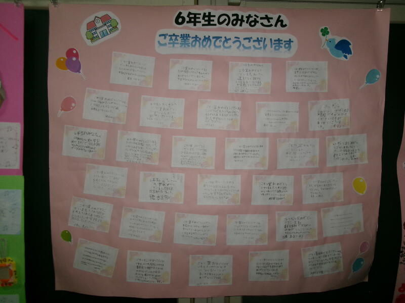 3月に入りました。先日の6送会は大成功に終わりました。今、6年生の教室横の廊下には各学年からのお祝いメッセージが貼られています。一人ひとりが感謝の気持ちを込めたメッセージが書かれています。放課後にゆっくり読んでいると心がほっとします。お別れはさみしいですが、みんなが感謝の気持ちを持って過ごせるこの時期はとてもいい時期です。来校された際にはぜひご覧ください。