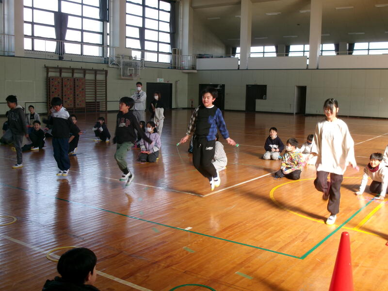 今日の昼休みは上学年(4~6年生)のハイスピード縄跳び大会がありました。前跳び・駆け足跳びなど自分の選んだ種目を1分間で何回跳べるのかを測定します。めちゃめちゃ気合いが入っていて、言葉通りハイスピードで跳でいる子もいれば、1分間を引っかからないように確実に跳んでいる子もいて、子どもたち一人ひとりの目当てがあって、見ていておもしろかったです。見ていてもうひとつ思ったことは、1分はとても長いなあと感じました。私ならきっと最後まで体力がもたないだろうと思いました。低学年の子どもたちもがんばる様子を見に来ていて。自分たちの大会に備えて心の準備をしていました。