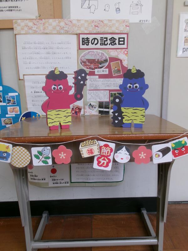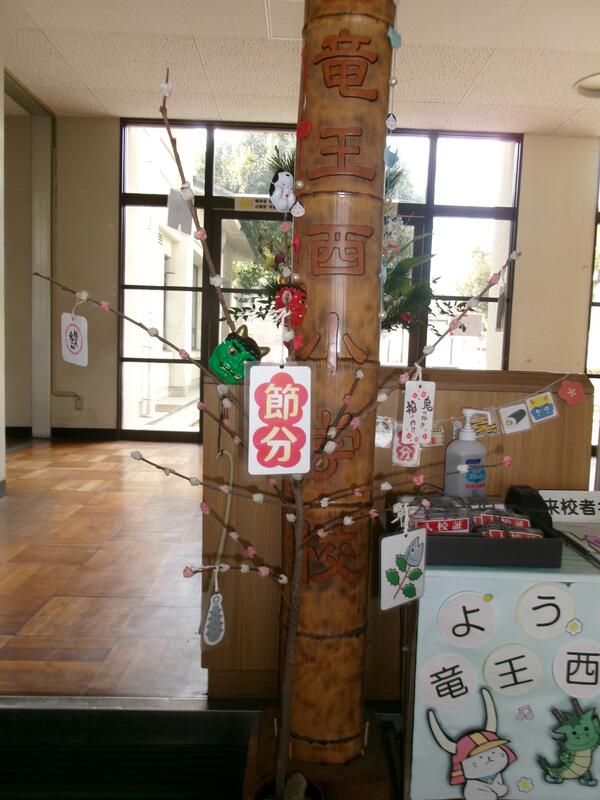 早いもので、学校に来る1月は今日で終わりました。来週の登校日には2月になっています。学校の玄関と校長室前は2月に衣替えをしました。2月は如月。2月3日は節分・豆まき、2月4日は立春です。暦の上では春になってきます。1年で一番短い2月を大切に過ごしていきたいと思います。