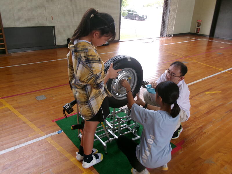 今日は5年生がダイハツものづくり教室を体験しました。ダイハツの方々に来ていただき、自動車づくりについて詳しく、楽しく体験できるように教えていただきました。子どもたちは製品検査やタイヤの脱着、塗装、金属プレスなど自動車づくりにつながる課程を教えていただきました。とっても興味を持って体験している様子が見られてうれしく思いました。